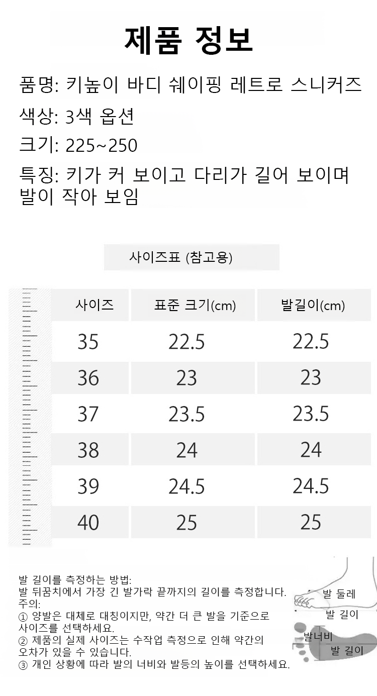 손쉽게 키를 높이고 슬림한 효과로 당신을 순간의 주인공으로 만들어 드립니다